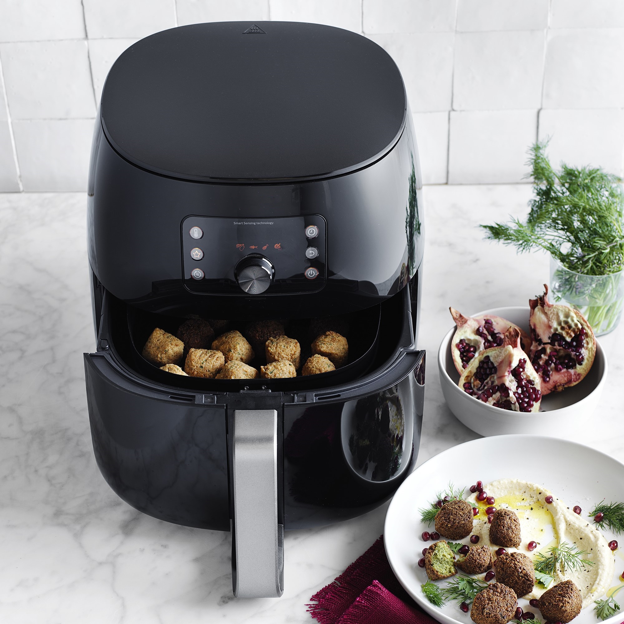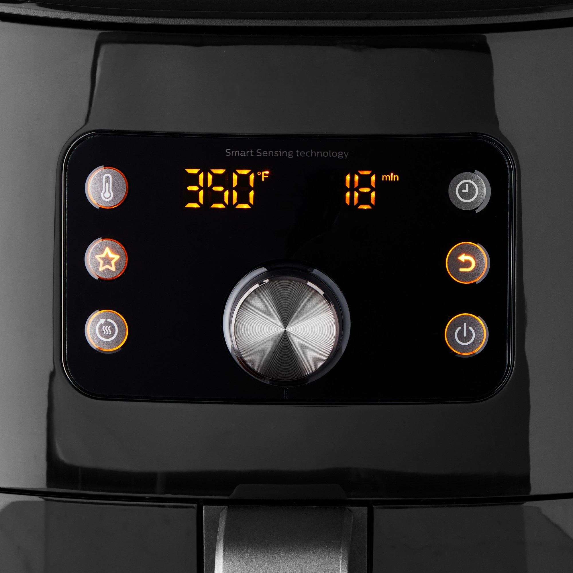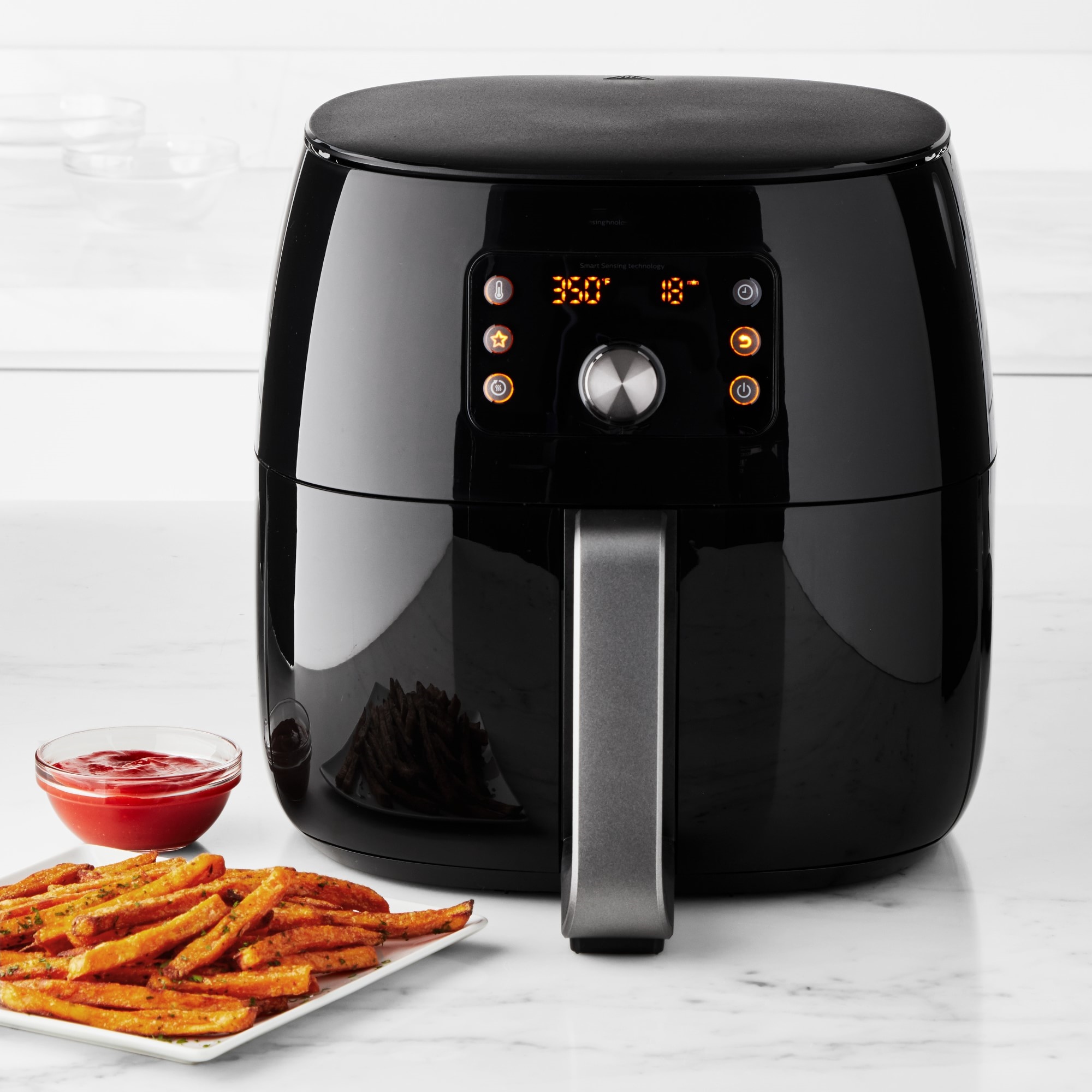 Take largest, most powerful Airfryer on the market, with all of its innovative healthy air frying capabilities, and add smart technology to get a new take on cooking perfection. Unique smart sensors automatically adjust the temperature and cooking time throughout the cooking process to deliver golden-brown perfection using little or no oil. The fat removal technology extracts and captures excess fat, leaving you with crispy deep-fried results with 90% less fat. Designed for family size meals, this airfryer has a generous capacity enabling you to cook food for a crowd. Don't limit your aspirations to frying – this machine is also great for baking, roasting, reheating and dehydrating.